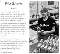 Britt lärde sig måla hästar av sin faster, Elin. Började sen i ung ålder att arbeta med krusmålning. Första arbetet hos oss på Nils Olsson Dalahästar var i början av 80-talet. Efter att ha arbetat i andra yrken så är Britt tillbaka hos oss sedan många år.